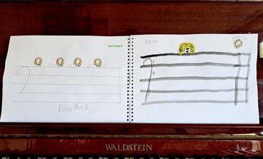 2) "The Note family of Pianoville" manuscript book by Marcia Goulart
